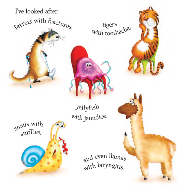 Hamish the hamster has caught his whiskers in his wheel, Paul the python has been tied in a knot, Cynthia the centipede has sprained 98 ankles playing hockey. But don't worry, everything will be fine after a visit to Nurse Nibbles!