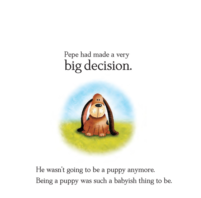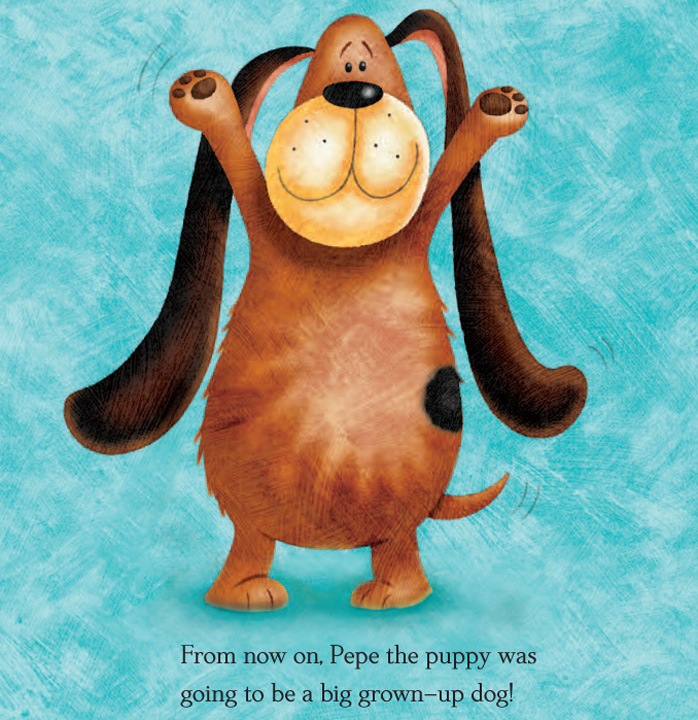 Pepe has made up his mind. He's not going to be puppy anymore, he's going to be a great big grown up dog. He's going to wee up trees like big grown up dogs. He's going to sniff botties like big grown up dogs. But can Pepe chase rabbits like big grown up dogs too?